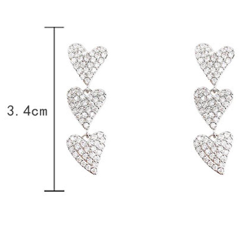 Sttiafay Vintage Heart Drop Earrings Long Heart Dangle Earrings Triple Heart Stud Earrings Silver Love Heart Earrings Jewelry for Women