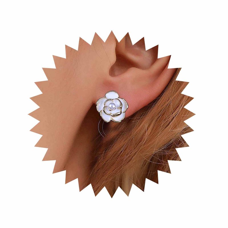 Sttiafay Vintage Pearl Flower Earrings Camellia Flower Stud Earrings Enamel White Flower Petal Earrings Gold Pearl Stud Earrings Jewelry for Women