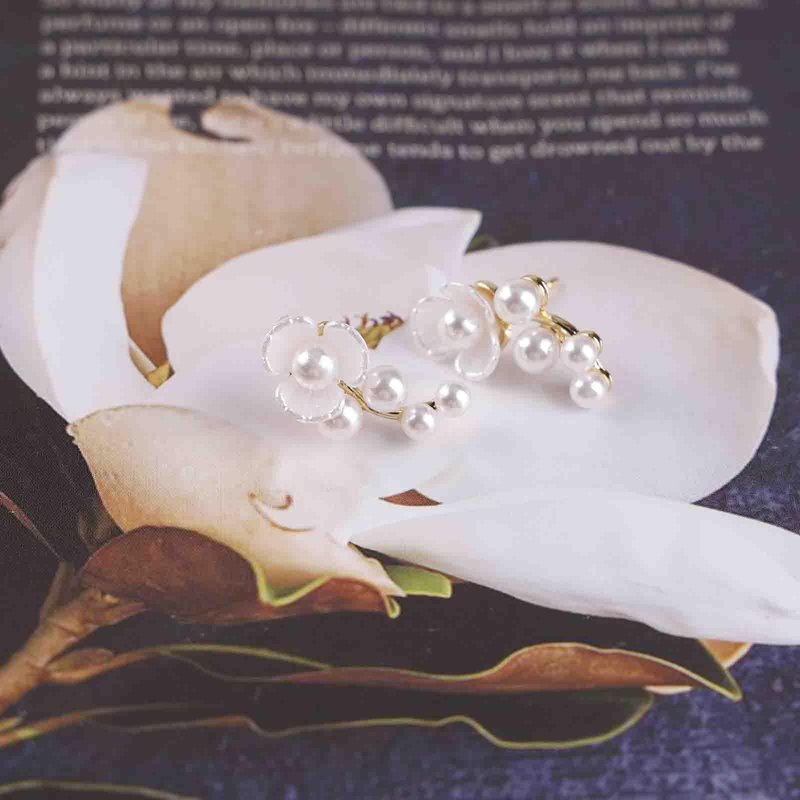 - Pearl flower drop earrings.Item Details:Handmade Item.Size:As Shown.Color:Gold.Materials:Quality Alloy/Pearl.Location:Ear.Style:Boho/Vintage.