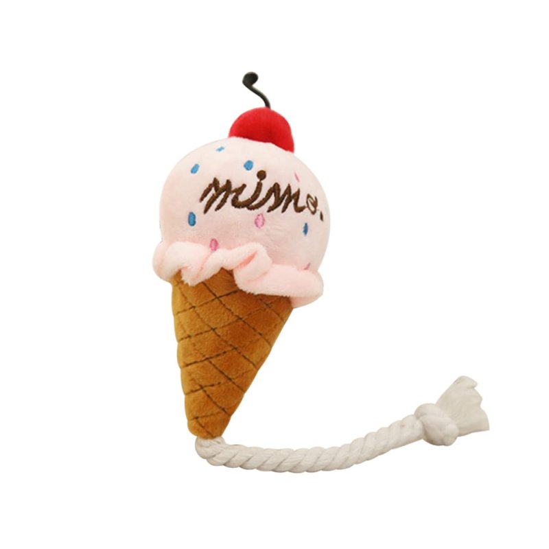 1 x Lovely Dog Toy Puppy Plush Squeak Toy Dogs Pet Cat Toys Chew Ice Cream Cone Play Sound Toys(Pink)