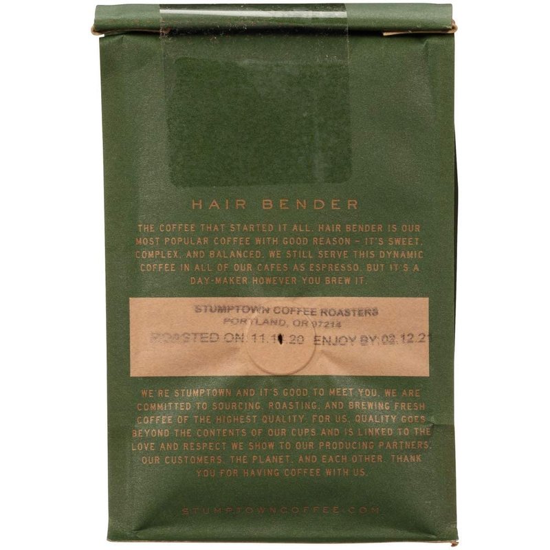 - Contains one (1) 12 Ounce Bag of Stumptown Hair Bender Ground Coffee