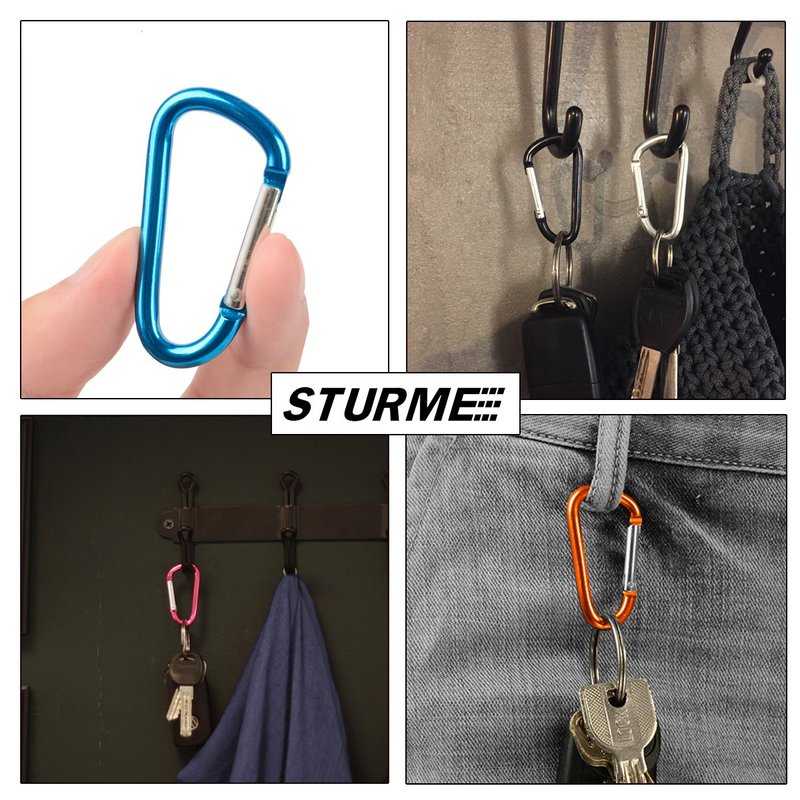 - ✅ MULTIFUNCTIONAL - STURME D Ring Carabiner clips are very suitable for outdoor hiking, fishing, camping, traveling etc. the lock system will keep you staff safe. Also you could use the carabiner clip as a key chain clip. Use it to attach the sports bottle, backpack, ropes of camping tent, hiking pole, small travel EDC tools etc.