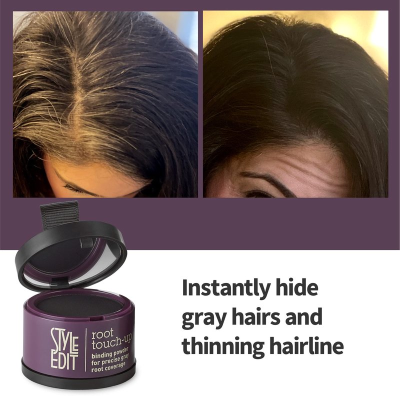 - ROOT TOUCH UP Style Edit’s ultra-light root cover up binding powder instantly conceals unwanted grays or root re-growth with just one swipe, for salon worthy hair, every day! Our unique sponge applicator allows for precise application of our root touch up powder – conceal what you want, where you want it.