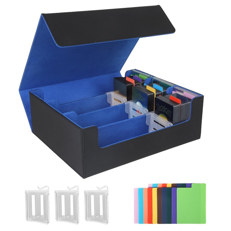 STYLIFING Card Storage Box for Trading Cards, 1800+ MTG Deck Box with Card Supporters & Divider Tabs, PU Leather Magnetic Closure Card Deck Case Fit for YuGiOh, TCG and Sport Cards (Black & Blue)