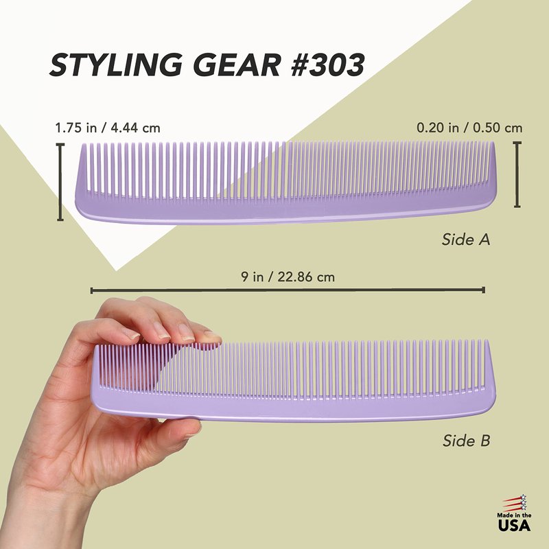 - CHOOSE FROM A VARIETY OF VIBRANT COLORS: to match your personal style and take your hair grooming routine to the next level with Styling Gear #303 tangle tamer comb extra-large all-purpose hair combs.