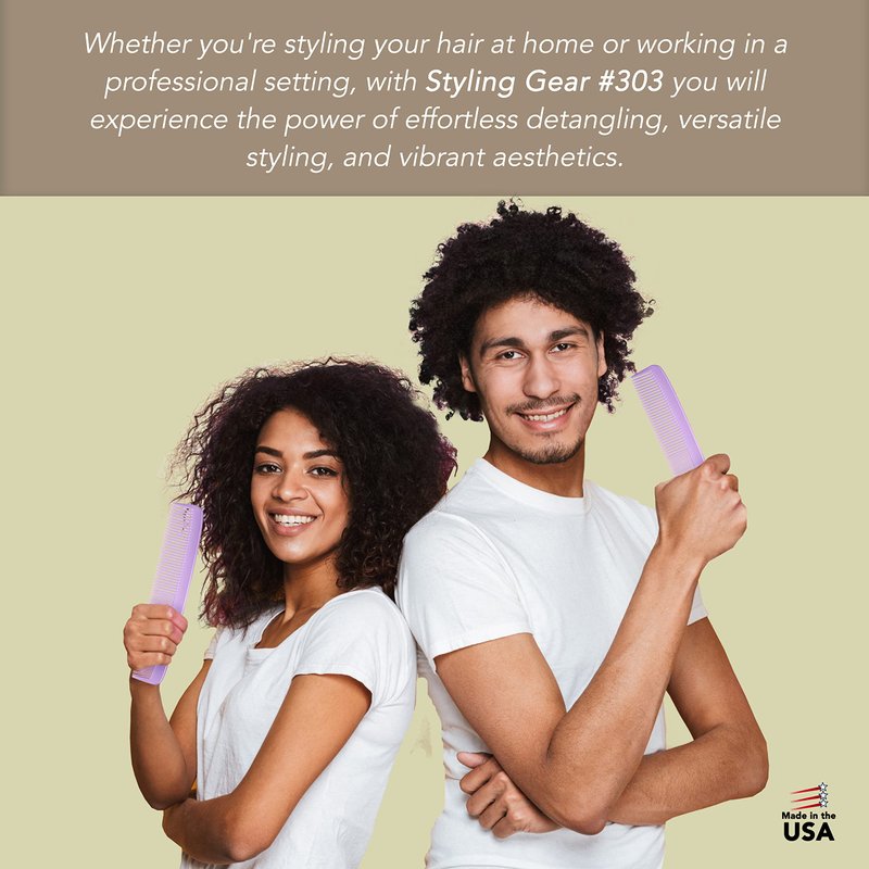 Styling Gear #303 Extra Large All-Purpose Hair Combs. The ultimate tool for effortlessly styling all hair types and lengths. Whether you need combs for women, combs for men, or hair combs for hair stylists, Styling Gear #303 combs have got you covered. Designed with wide teeth and fine teeth, these combs are perfect for detangling curly hair, hair detanglers. With their durable construction and smooth edges, Styling Gear #303 combs are a great option for those in need of a wide tooth comb for curly hair or a detangling comb. In addition to being a great curly hair comb, Styling Gear #303 combs are also perfect for men. Great as a clipper combs, large tooth comb, fine tooth comb, wide tooth comb for wet hair, and a wide comb. For those in need of a styling comb or a shower comb, our wide tooth combs for women and men are perfect. The scalp comb is also a great option for those in need of a detangler comb or a wig comb. Our barber combs are also great for kids, making it easier to detangle their hair without causing pain or discomfort. And for those always on the go, our travel comb is perfect for styling hair on the fly. If you're looking for combs for natural black hair or the best hair detangler for matted hair, look no further than Styling Gear #303. Our wide tooth comb for curls is perfect for those with natural hair, and our fine tooth combs for women are great for styling short hair. They are great combs for women, combs for men, or combs for hair stylists, Styling Gear #303 has a wide range of uses for you. From wide tooth combs to fine tooth combs, scalp combs to shower combs.