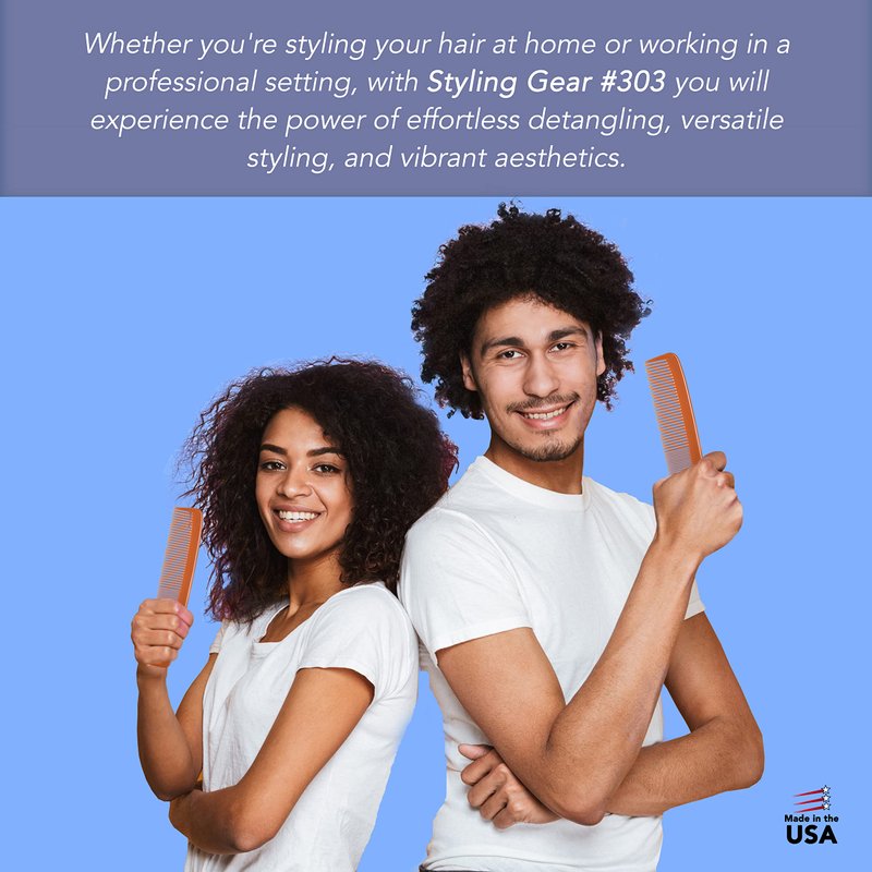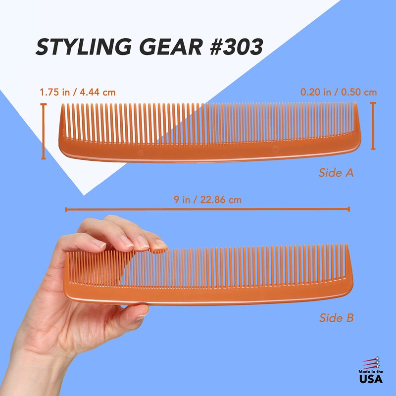 Styling Gear #303 Extra Large All-Purpose Hair Combs. The ultimate tool for effortlessly styling all hair types and lengths. Whether you need combs for women, combs for men, or hair combs for hair stylists, Styling Gear #303 combs have got you covered. Designed with wide teeth and fine teeth, these combs are perfect for detangling curly hair, hair detanglers. With their durable construction and smooth edges, Styling Gear #303 combs are a great option for those in need of a wide tooth comb for curly hair or a detangling comb. In addition to being a great curly hair comb, Styling Gear #303 combs are also perfect for men. Great as a clipper combs, large tooth comb, fine tooth comb, wide tooth comb for wet hair, and a wide comb. For those in need of a styling comb or a shower comb, our wide tooth combs for women and men are perfect. The scalp comb is also a great option for those in need of a detangler comb or a wig comb. Our barber combs are also great for kids, making it easier to detangle their hair without causing pain or discomfort. And for those always on the go, our travel comb is perfect for styling hair on the fly. If you're looking for combs for natural black hair or the best hair detangler for matted hair, look no further than Styling Gear #303. Our wide tooth comb for curls is perfect for those with natural hair, and our fine tooth combs for women are great for styling short hair. They are great combs for women, combs for men, or combs for hair stylists, Styling Gear #303 has a wide range of uses for you. From wide tooth combs to fine tooth combs, scalp combs to shower combs.