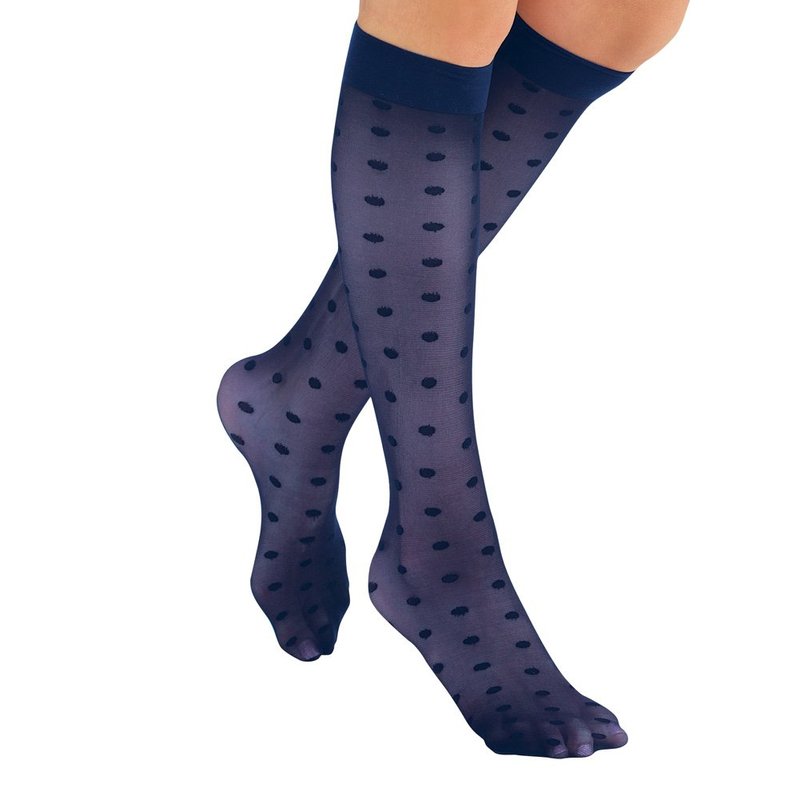Stylish & Comfortable 15-20mmHg Compression Knee High Stockings, 3 Pairs - Made in USA, Navy, Queen - Made in the USA