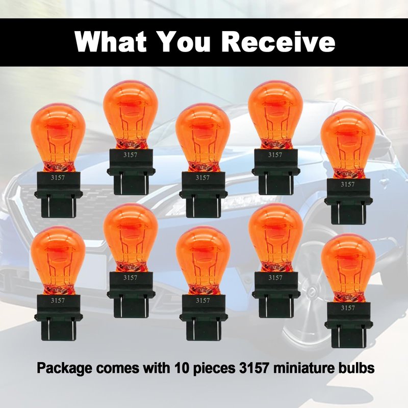 - 【Durable to use】High-quality materials and perfect design ensure maximum safety and prolong the service life of the 3157 Light Bulb, 10 3157 premium bulbs for your replacement needs, which you can also share or keep as a spare.