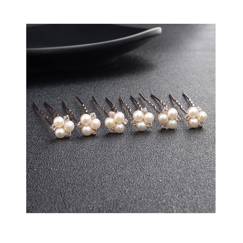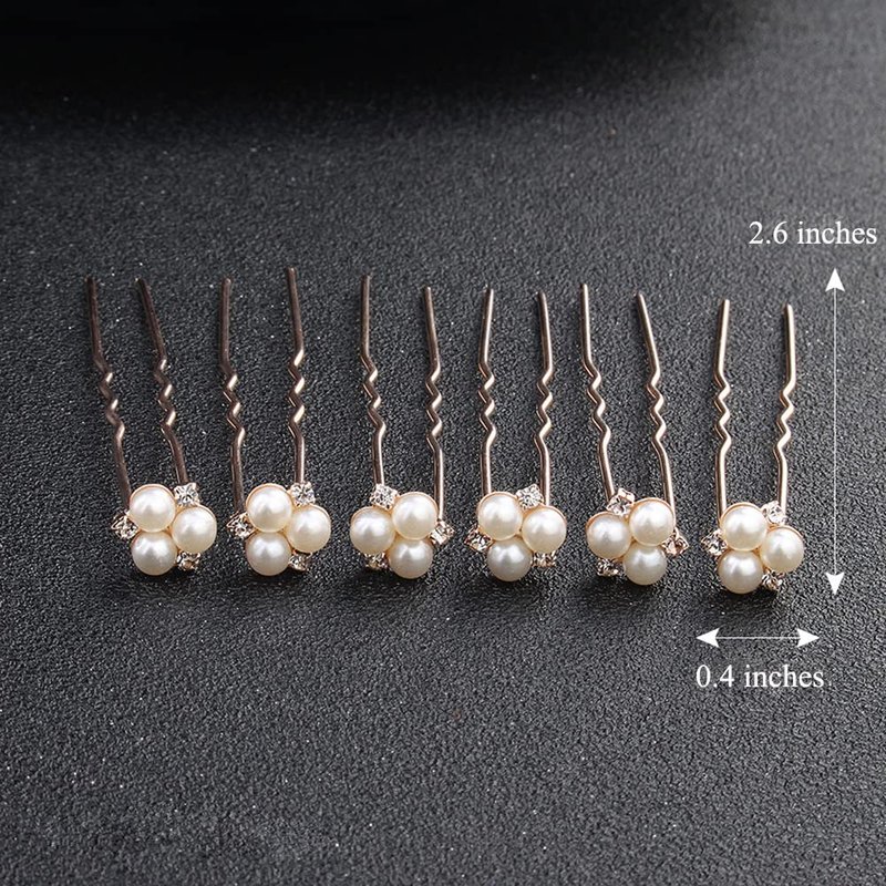Suandsu 6 Pcs Pearl Crystal Hair Pins Bride Wedding Hair Clips Rhinestone Hair Piece Accessories for Women and Girls Rose Gold