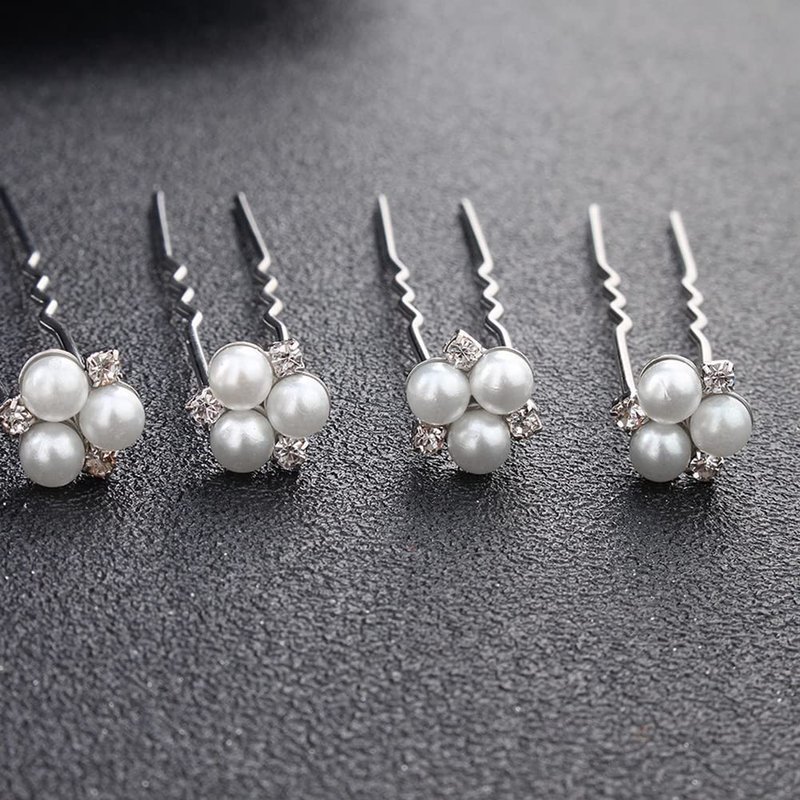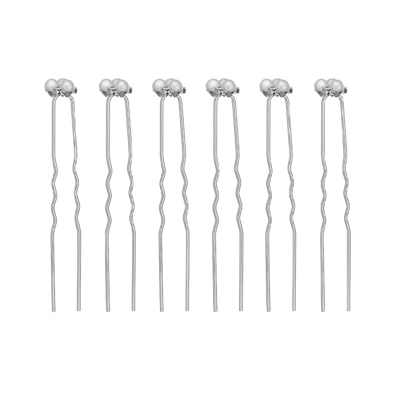 Suandsu 6 Pcs Pearl Crystal Hair Pins Bride Wedding Hair Clips Rhinestone Hair Piece Accessories for Women and Girls Silver
