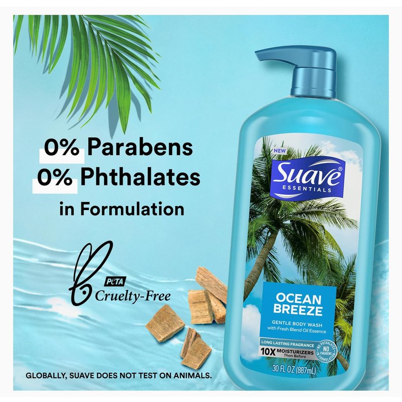 Suave ESSENTIALS OCEAN BREEZE BODY WASH WITH SWEET BLEND OIL ESSENCE 30 FL OZ