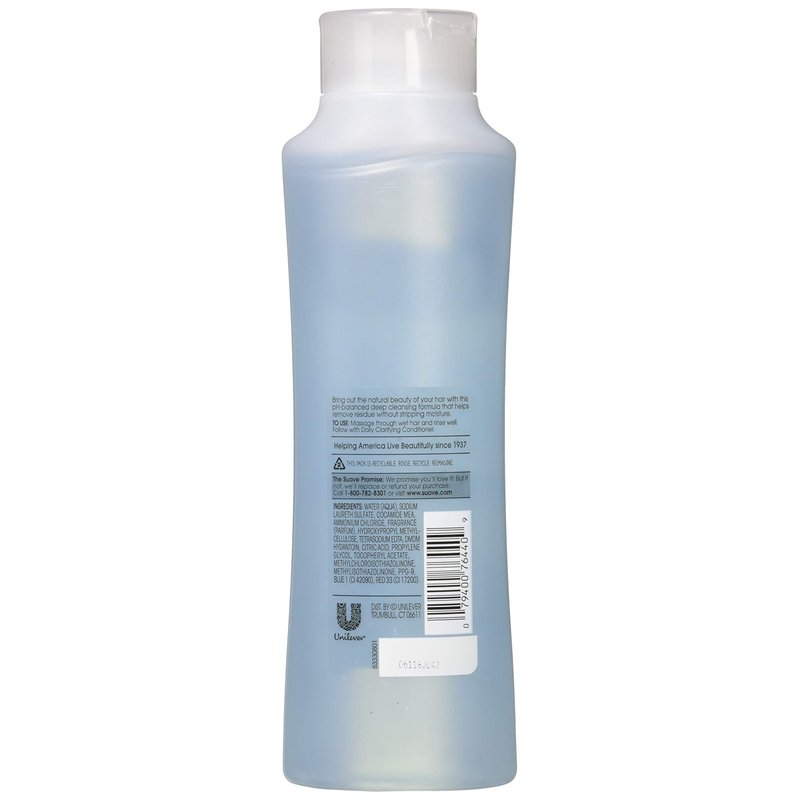 - Suave Essentials Daily Clarifying Shampoo gently cleanses hair