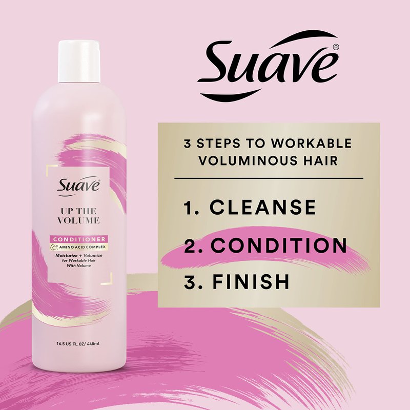 - Suave Up The Volume Conditioner, with Amino Acid Complex, lightly moisturizes and volumizes for gorgeous, workable hair with volume