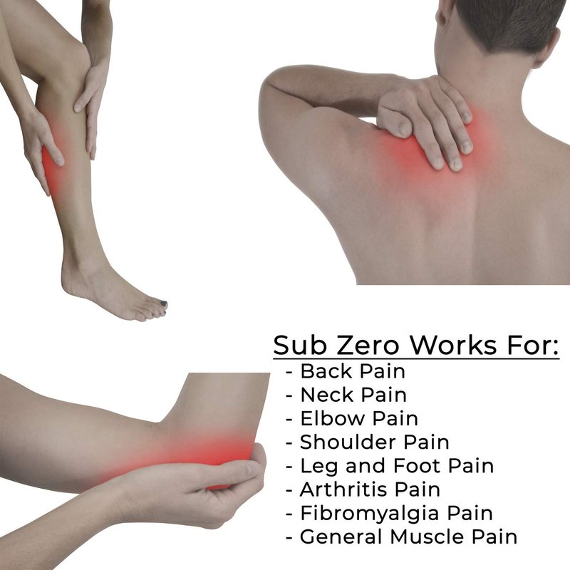 - Sub Zero Quality.... Compare the active ingredients and pain relief of Sub Zero against other major numbing cream or gels and you will be pleased with less pain. Also works for fibromyalgia pain relief and for joint pain relief