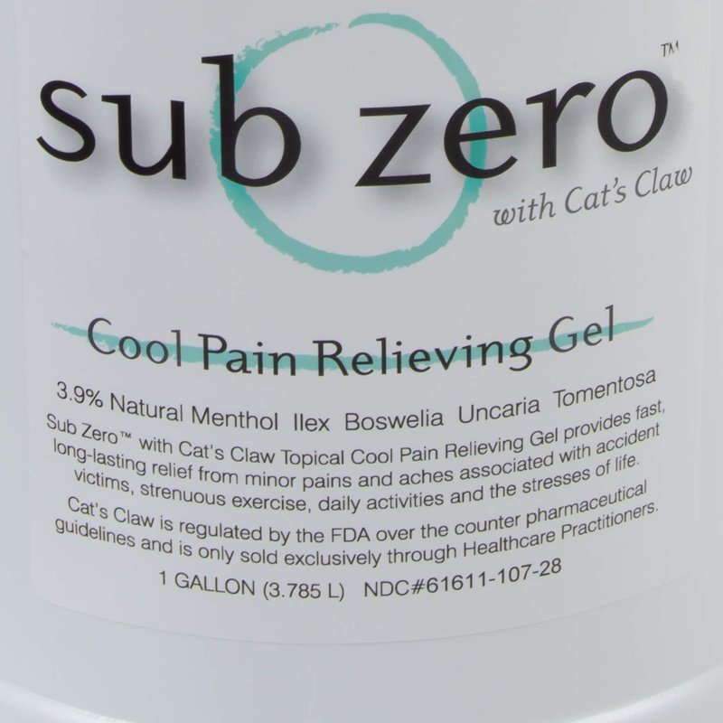 - Fast-acting pain relief... Sub Zero pain relief gel contains menthol gel, cat's claw herb & a unique blend of other herbs to provide immediate & penetrative pain relief. Our pain relief gel is great for muscle pain, joint relief, nerve pain, & more