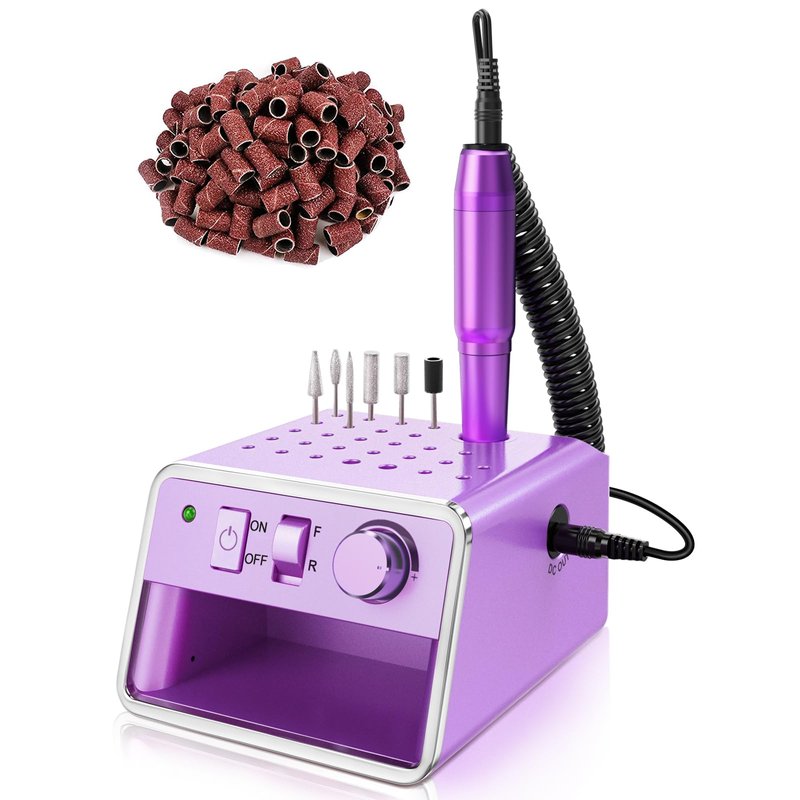 Subay Nail Drill Machine Electric File, Portable for Acrylic Gel Dip Powder Nails, All in One Nail Drill Kit for Manicure Pedicure, Nail Set with Everything, Purple