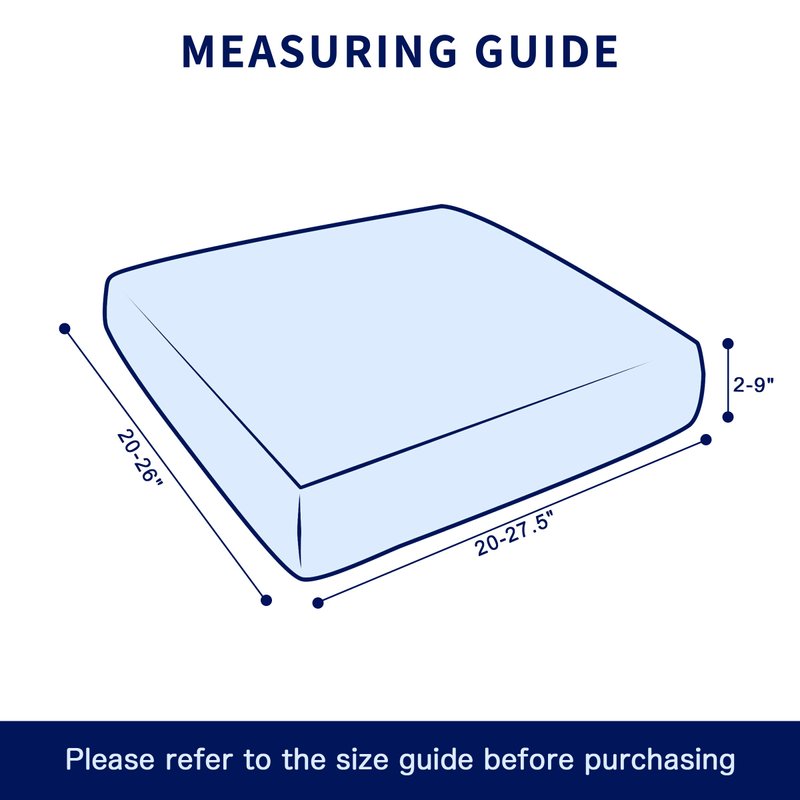 - MEASUREMENT: Please measure your cushion before purchase. Our cushion slipcovers have 3 sizes. Sofa cushion: Length: 59~75 inch; Width: 20~27 inch; Thickness: 2~9 inch. The cover is fastened shut by elastic band. Our cushion slipcovers also fit for T-cushion.