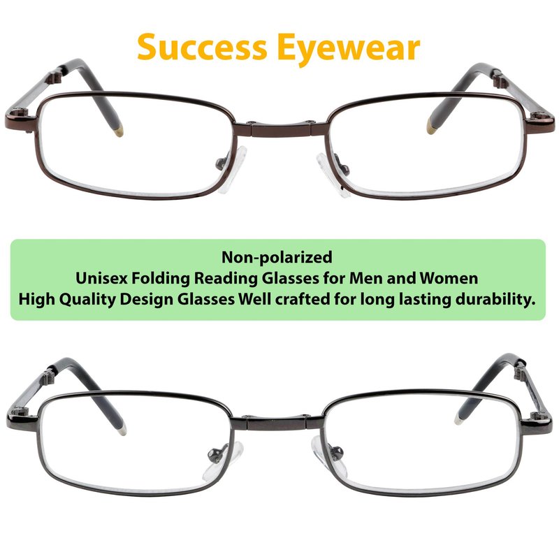 Success Eyewear Reading Glasses Set of 2 Fashion Folding Readers with Leather Cases Brown and Gunmetal Glasses for Reading for Men and Women +3.5
