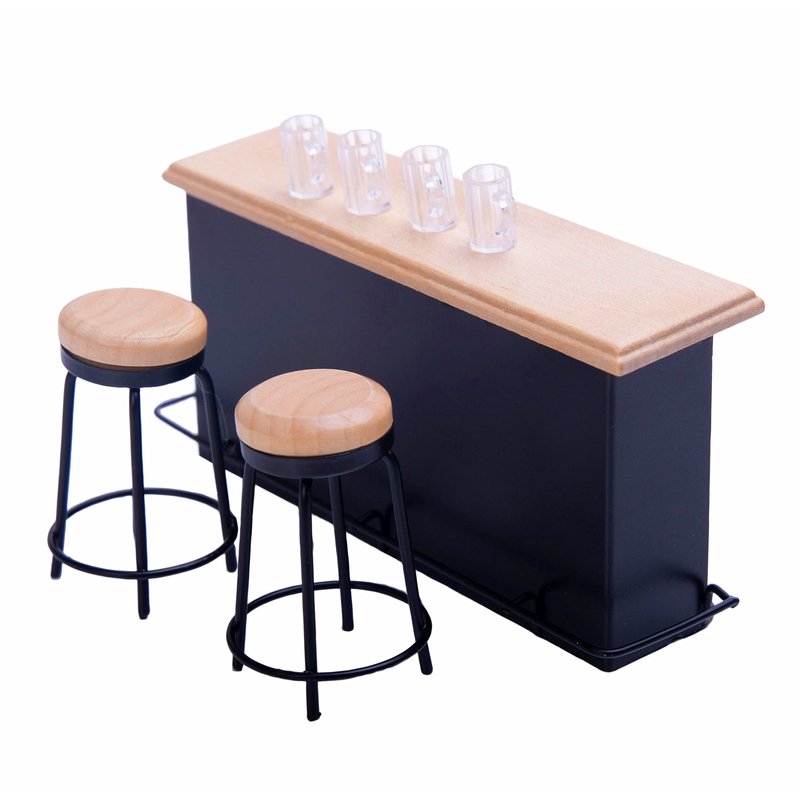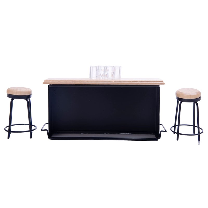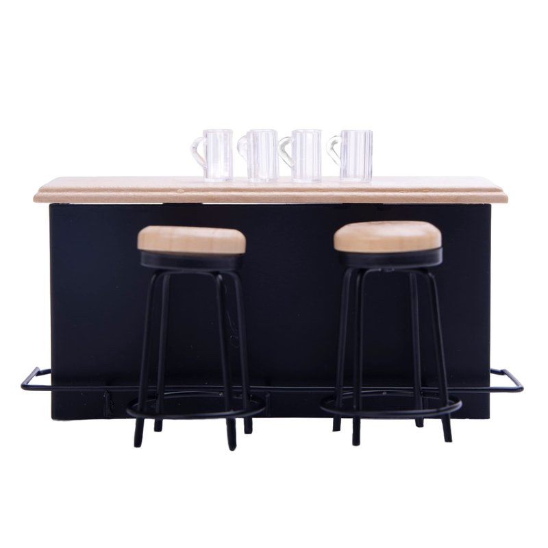 - The dollhouse bar set is made of wood and plastic It is not easy to deform and the surface is smooth and free of impurities.Notice: The top of dollhouse chair is detachable.