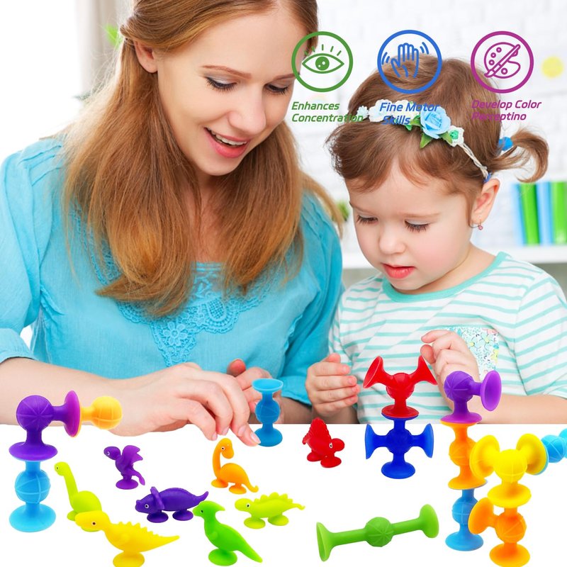 - Preschool Classroom Suction Toys - 26pcs colorful suction toys, Build, stick, connect, and pop! Construction toys for kids learning toys that stick to any smooth surface and to each other.