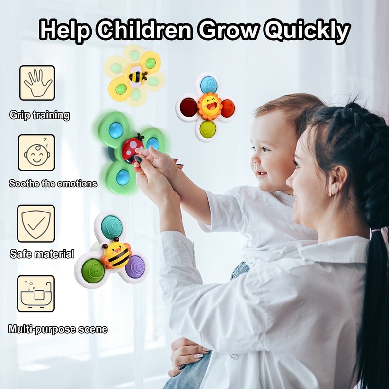 - ✅【Safe High-Quality Material】The spinner toys made of food-grade silicone , without BPA, that is safe for baby chewing.It have smooth edges, that won't scratch baby's skin when they playing.The rotating toys have a rattle inside, that make a soft sound when shaking,bring happy to baby's bathing time. It's a safe and funny toy for boys and girls.