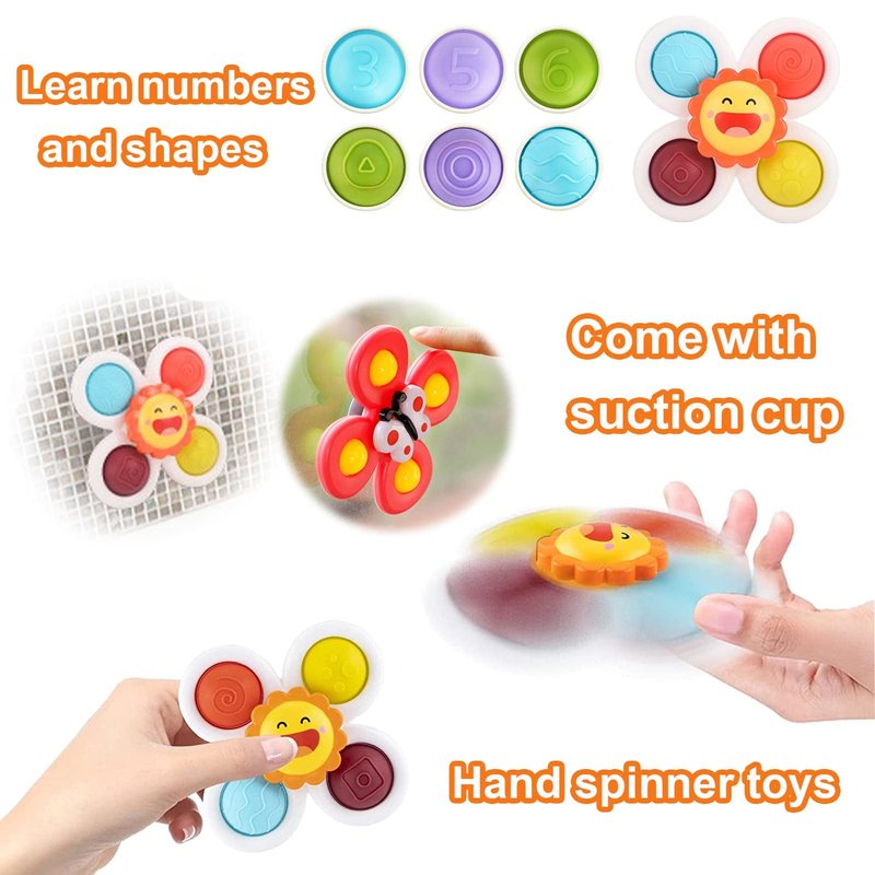 - ✅【Multifunctional Bath Toys 】They are more than sensory spinning toys! Its strong suction cup can be good adsorbed on the smooth bathtub surfaces. It becomes fun bath toys in second! when the water rushes to the leaves, it will keep spinning, baby will enjoy every bathtime! Dining table, Bathtub, Car window, Whether indoor or outside, spinner toys team will always share happy moment with baby!