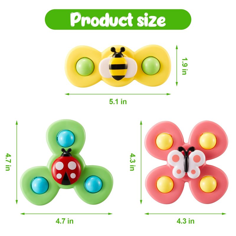 - Bath Toys for Toddlers: Each suction cup spinners for babies is thoughtfully packaged, making it an ideal choice for 1, 2, or 3-year-old boys and girls. Give the toy of interactive play and skill development with these suction cup spinner toys from us.