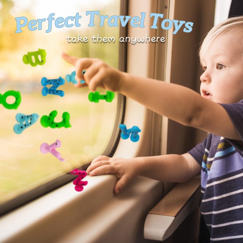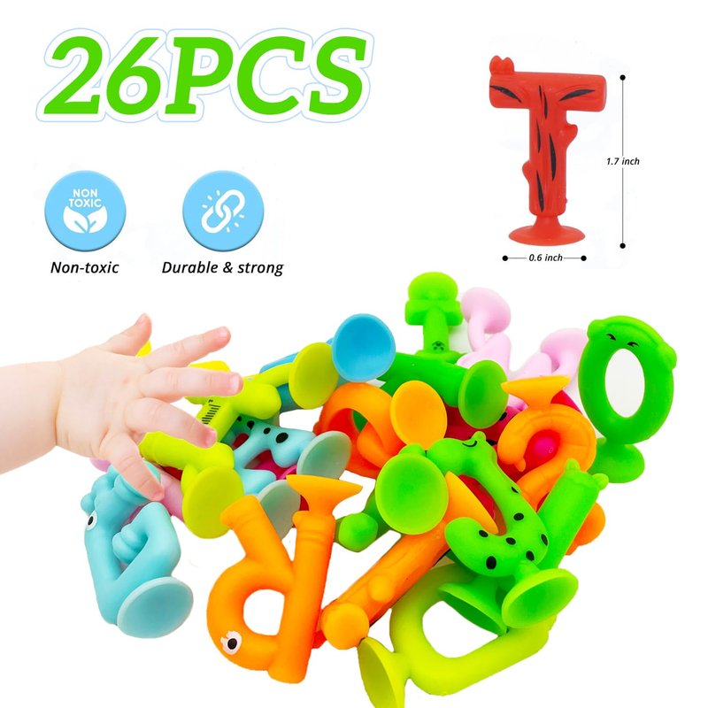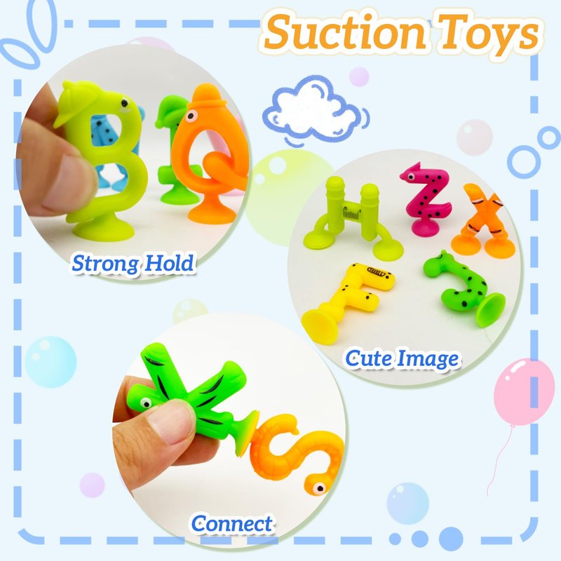 - 26 Creative Suction Toys: Bathtime bath toys ideal for toddlers with a brightly colored assortment of letters suction toys that stick to the walls and tubs. Soft silicone sensory suction toys that are safe for curious little hands.