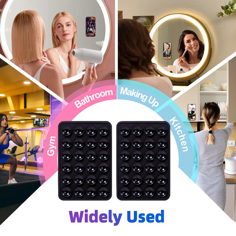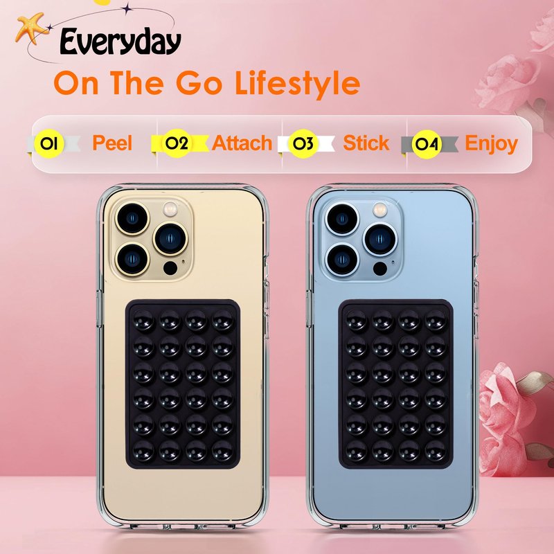 - 【Sturdy & Premium】 - The phone suction grip is made of high-quality silicone and has 24 independent suction cups, which have strong suction power and provide a firm and reliable fixation for the phone. The adhesive backing has been upgraded to be extremely sticky and will leave no residue when removed. Compatible with iPhone, Samsung Galaxy, HTC and other suitable sized brand phones.