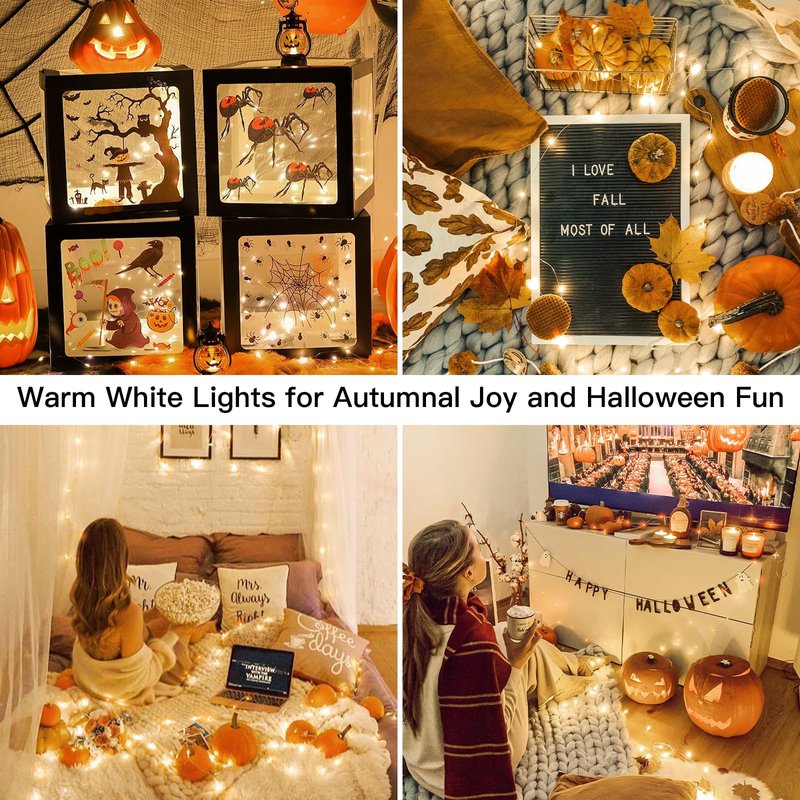 - FAIRY LIGHTS WITH REMOTE: This multifunctional warm string lights are super convenient, and enables us to switch eight flashing modes, and adjust the brightness quickly. Additionally, the timer function allows us to set up on/off time for 6hrs on/ 18hrs off. The twinkle lights will turn on automatically by settings, helping us to create a magic light show in the future.