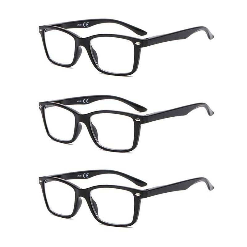 Suertree 3 Pack Lightweight Reading Glasses with Spring Hinge, Anti UV Ray Eyeglasses for Men Women, Computer Reading Eyewear, Eye Protection, Reader Aid, Black, 1.5X