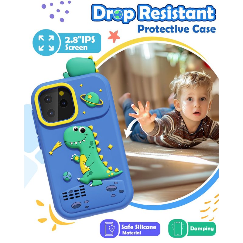 - High-Definition Dual Cameras: Equipped with high-definition dual cameras, built-in 20 cute stickers. Kids toy phone make it easy for kids to take selfies and choose fun photo stickers. Featuring 2.8" IPS screen, the image display is clearer. It’s a great way to capture memorable moments and encourage creativity.The included 8GB card can store more photos and video.