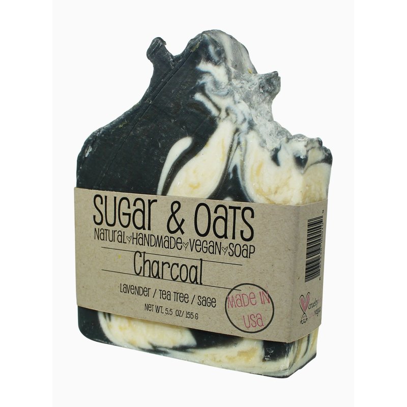 Sugar and Oats, Activated Charcoal, Bentonite Clay Soap with Exfoliating Jojoba Beads, Essential Oil Blend of Lavender, Tea Tree, and Sage, Face and Body Vegan Soap, Handmade Cold Press Skincare