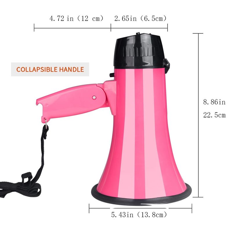 Sugar home Portable Megaphone Bullhorn 20 Watt Power Megaphone Speaker Voice and Siren/Alarm Modes with Volume Control and Strap (Pink)