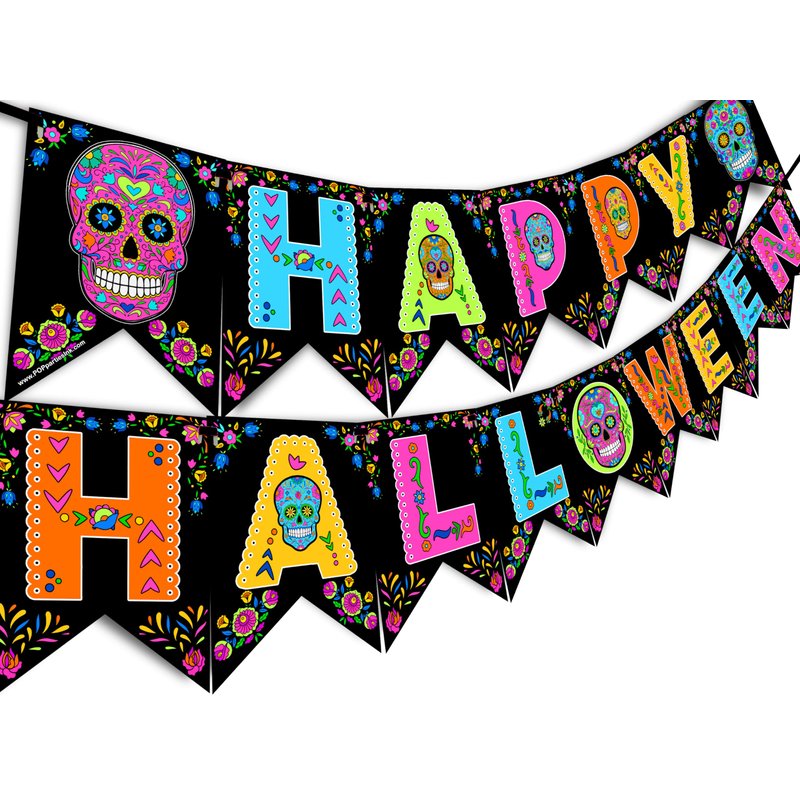 Sugar Skull Happy Halloween Banner Pennant - Sugar Skull Halloween Party Supplies - Halloween Party Decorations - Halloween Decorations - HH
