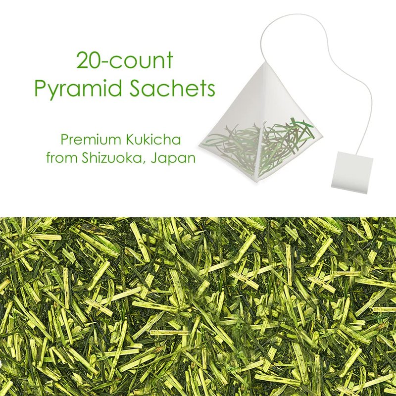 [Sugimoto Tea] Relaxing Kukicha - Authentic Japanese Green Tea, Low-Caffeine Twig Tea, Compostable Pyramid Teabags, Resealable Pouch, Enrich Your Day with Sweet Umami Flavor (20 Teabags x 3 Packs)
