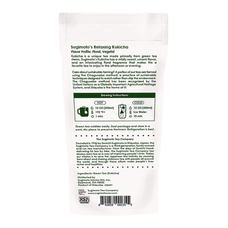 - DELIGHTFUL TASTE AND AROMA: Sugimoto's Relaxing Kukicha boasts a mildly sweet, umami flavor with a chestnut note, complemented by an intoxicating floral fragrance, making it a favorite tea to enjoy in the afternoon or evening.