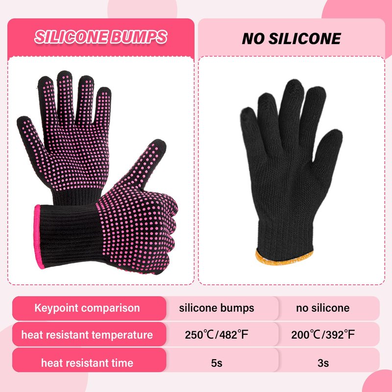 - Anti Slip and Flexible: the silicone bumps on the surface of our heat resistant work gloves not only enhance their anti slip properties, but also add flexibility to ensure a secure grip; Say goodbye to worrying about items slipping out of your hands while doing hairstyles