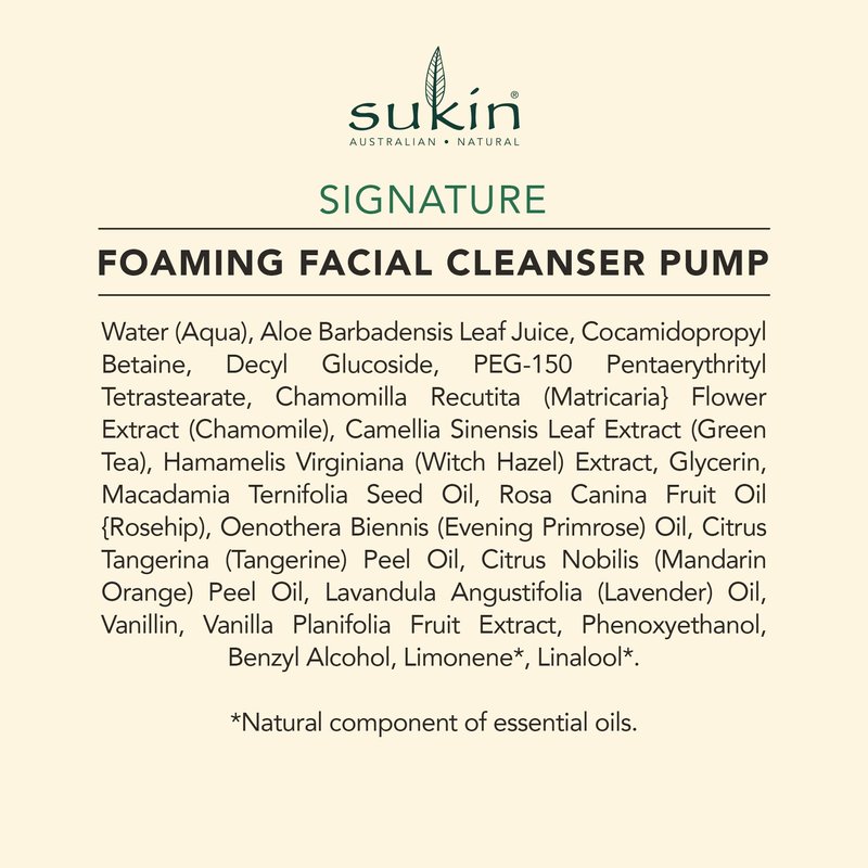 Sukin Foaming Facial Cleanser Pump, Gentle Gel Cleanser with Green Tea, Aloe Vera & Chamomile to Purify, Soothe & Tighten Skin, 4.23 Fl Oz