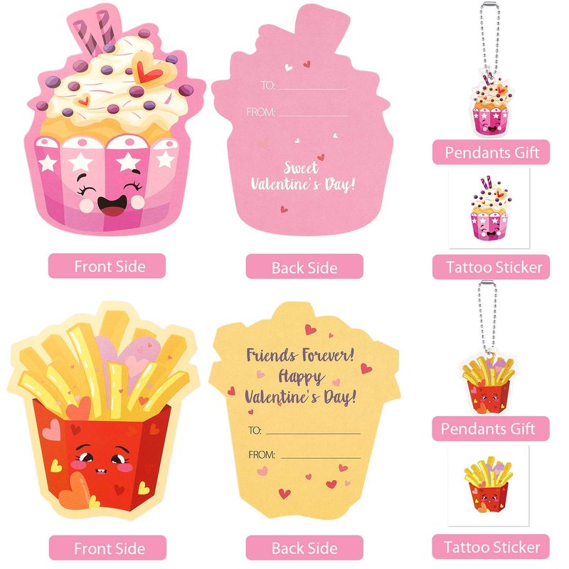 - 🎁SPECIAL VALENTINE’S PENDANTS GIFTS - This valentines gift set includes 30 pcs pendants with yummy patterns which can be hung on schoolbag or key chains. Kids can send to friends to show kindness and boost their social skill. These personalize cards also offer more fun for boys and girls in exchanging cards!