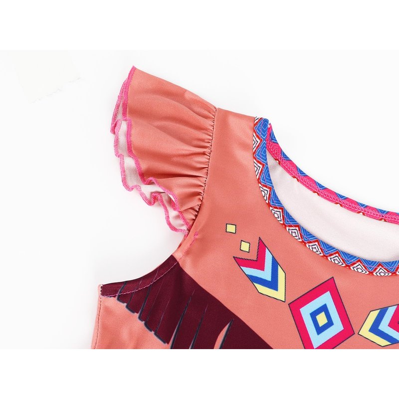 - Design: adorable flutter short sleeves, round neck, ankle length, vivid cartoon printed pattern, not lined. Wear this Pocahontas princess dress make your little girl beautiful, fashionable, and elegant!