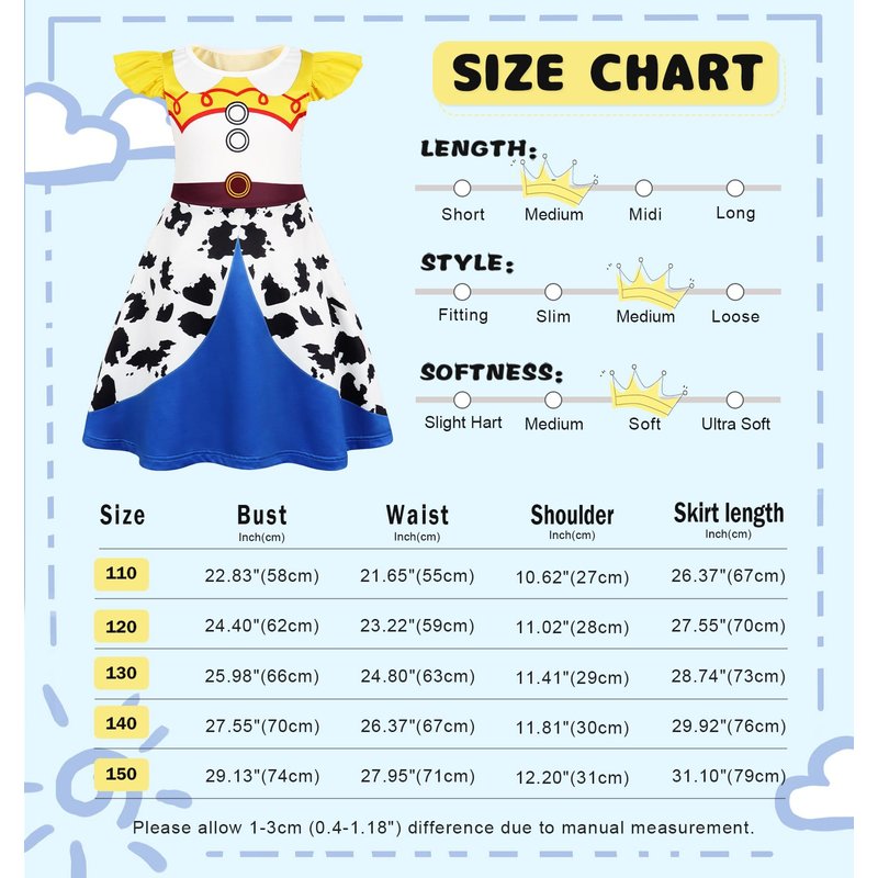 - Design: adorable flutter short sleeves, round neck, ankle length, vivid cartoon printed pattern, not lined. Wear this Jessie princess dress make your little girl beautiful, fashionable, and elegant!