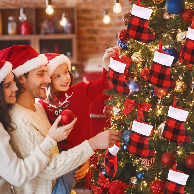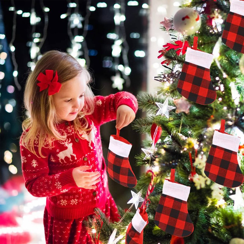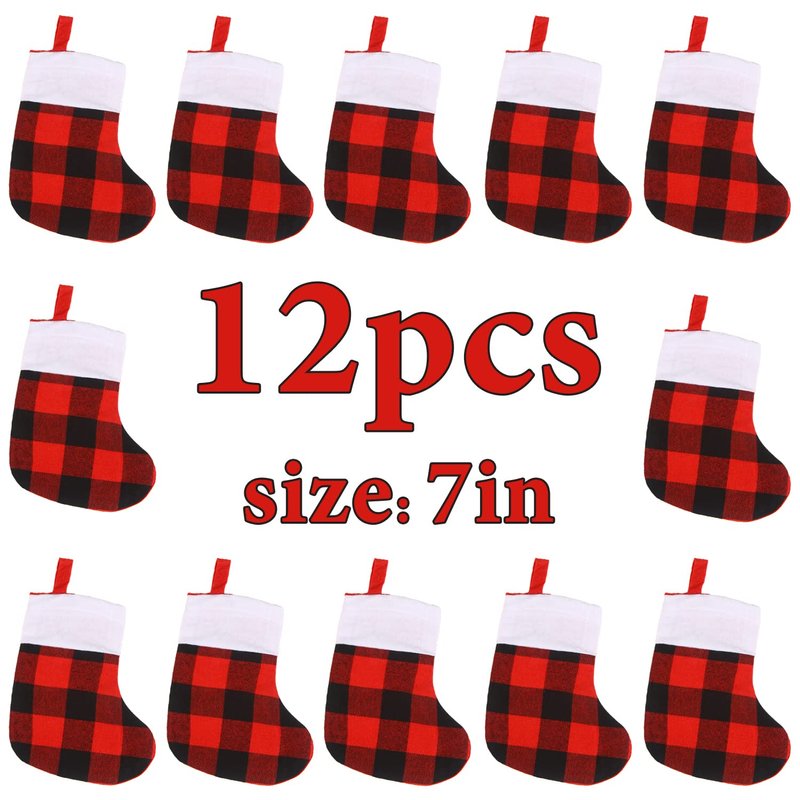 - Product Includes: 12 pack red and black plaid Christmas small stockings, Beautiful holiday decor for christmas tree, fireplaces or any other places.
