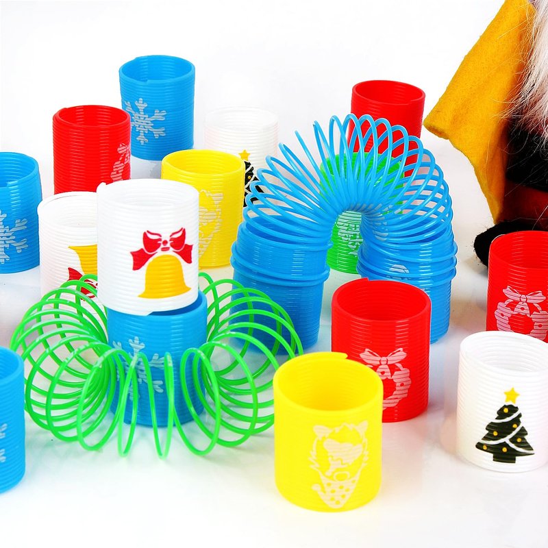 - Material: Christmas mini spring toys are made of high quality nontoxic plastic, will still keep their shape when you stretch it repeatedly.