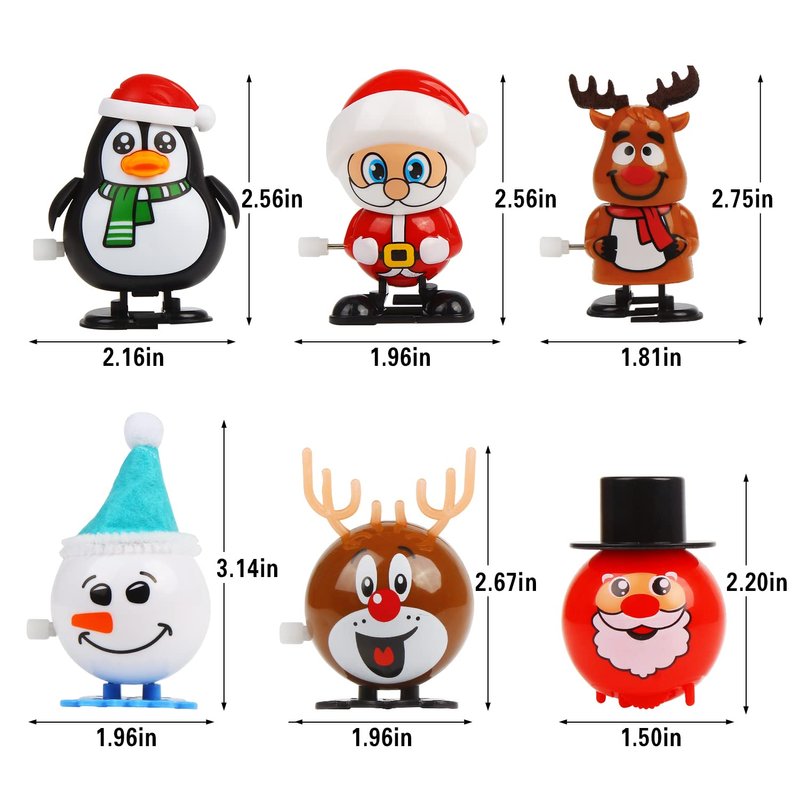 - Design: Wind up toys are made with high quality and safe materials. Non-toxic and odorless. Include Popular Christmas Characters such as Santa, Reindeer, Snowman etc.