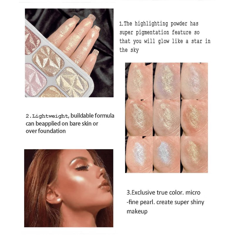5.Ideal for brightening cheekbones, eyelids, brow bones, inner corners and lip, with Light-diffusing pigments to enhance face facial features makeup palette.