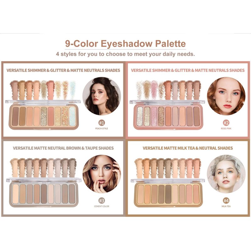 - 【9 Popular Shades Eyeshadow Palette】 This 9-color eyeshadow palette is carefully selected, all shades are popular colors-Various shades from light to dark, each color can be used alone or combined with other colors to achieve the best effect