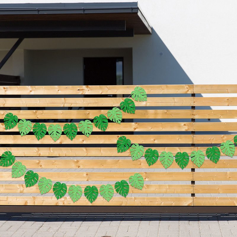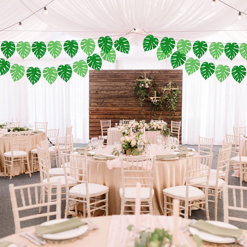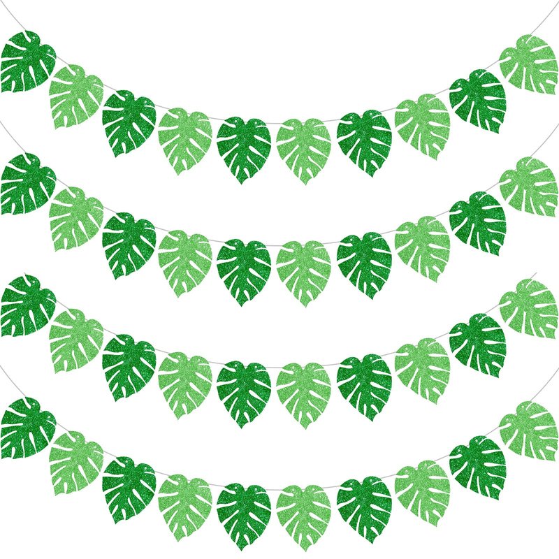The tropical green leaves banner is glittery in the light, making your party and event more colorful and interesting.