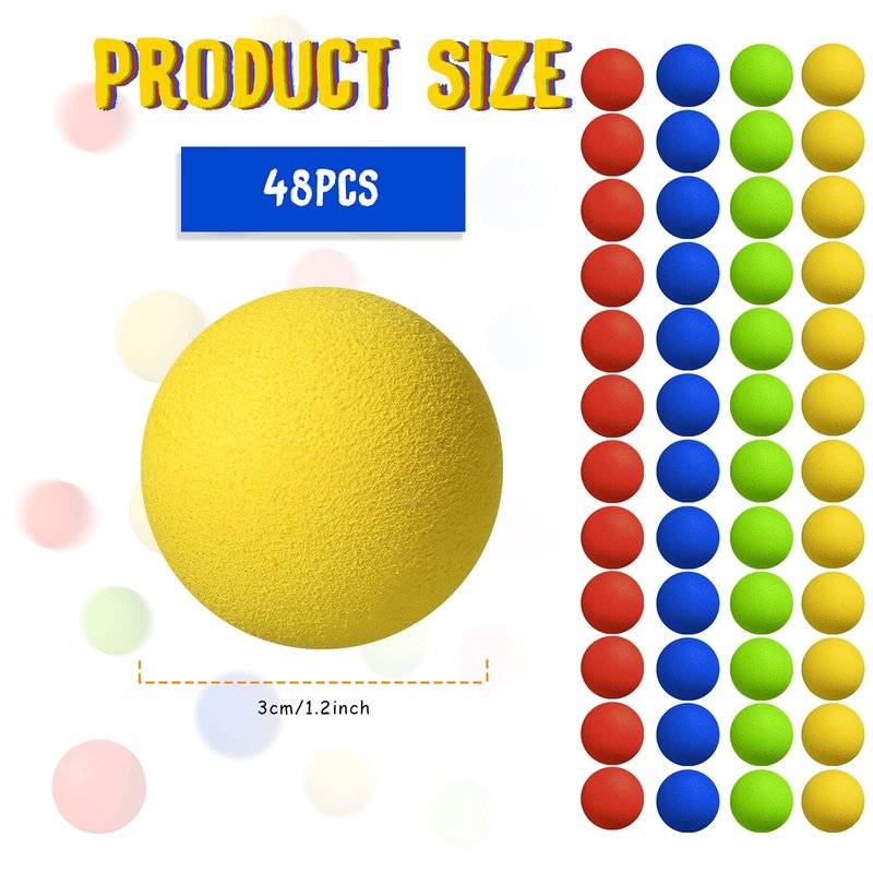 Sumind 48 Pieces Power Small Foam Refill Balls Bulk for Gun 1.2 Inch Refill Balls Mini Soft Foam Sponge Balls for Kids Christmas Birthday Party Favors Gifts(Red, Blue, Green, Yellow)